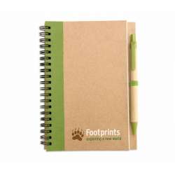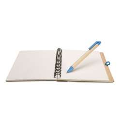Bloc-notes og pen i ét sæt.