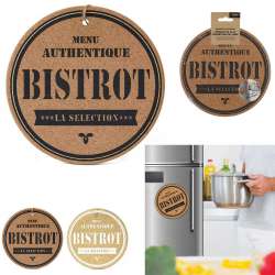Giv dit køkken et strejf af stil med denne runde bordskåner af kork i bistrodesign. Den er praktisk og flot og kan nemt sættes på køleskabet takket være den magnetiske bagside. Den er altid inden for rækkevidde og bliver et rigtigt dekorativt tilbehør.