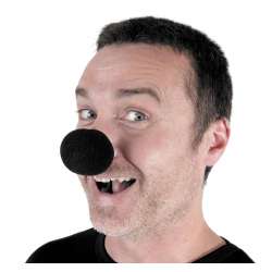 Klassisk sort klovnenæse i blød skum. Perfekt til alle festlige anledninger.