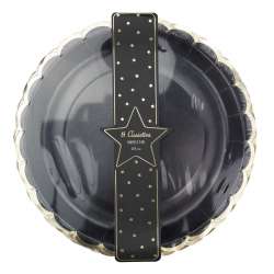 FESTONERET TALLERKEN 23CM SORT OG GULD X 8
