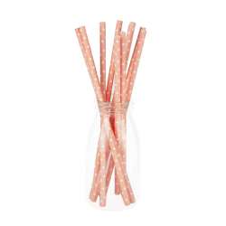 SÆT AF 10 PASTEL ROSA STRÅER MED HVIDE PUNKTER