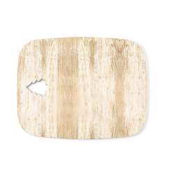 Skærebræt i rektangulær form med udskåret juletræ.