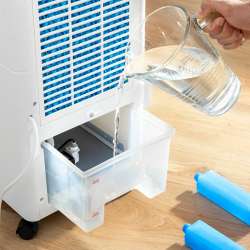 Dette bærbare klimaanlæg har en kapacitet på 5 liter fordelt på to reservoirer. Det betyder, at du kan nyde en langvarig kølende effekt uden hyppige påfyldninger. Perfekt til en hel dag med friskhed.