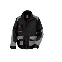 Jakken er vandafvisende, åndbar og vindtæt. Den har en stor lynlås med beskyttende klap, der lukkes med trykknapper.