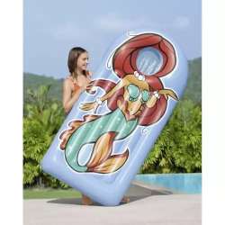 SPECIFIKATIONER - Farve: blå med mønster. Materiale: vinyl. Konstruktion: 2 luftkamre. Maksimal belastning: 90 kg. Mål: 188x89 cm. Vægt: 1,25 kg. Vægt af pakke: 1,39 kg.