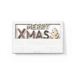 Magnet i naturligt træ med en original "Merry Christmas"-tekst. Den unikke tofarvede finish skiller sig ud.