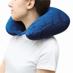 Med en trykknap kan den holdes på plads omkring halsen. Perfekt som rejsepude til støtte af hoved, nakke og ryg.