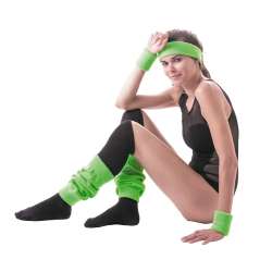 Sæt med neon grøn hårbånd og håndledsbind.