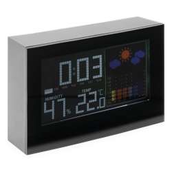Horloge de bureau COLOUR: avec fonctions prévisions météo, alarme, affichage date/heure, hydromètre, thermomètre (en °C et en °F), écran LCD, sortie adaptateur secteur (non fourni)