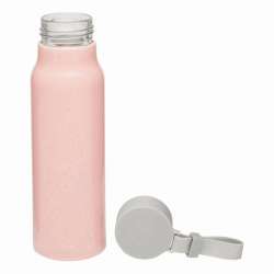 Glasflaske med låg og bærerem. Den har en kapacitet på ca. 300 ml. Perfekt til daglig brug.